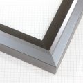 Unique geometric 1 " floater. The face of this molding features an off center peak which gives it a unique contrast in the right lighting.  This frame comes in Metallic Blue Pewter with a dull satin finish.