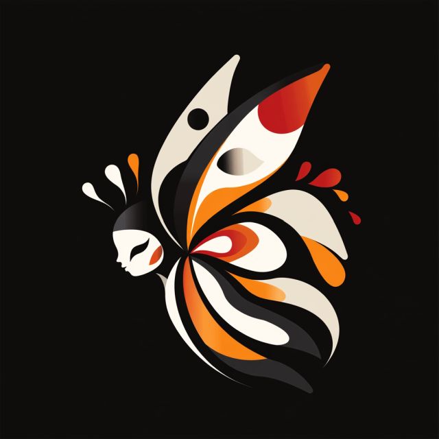 Title: Vibrant Butterfly Artwork in Bold Oranges and Reds Photo ID: 85605 |