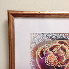 Mats can also highlight or draw out certain colors or design aspects of an artwork. Try placing a white mat on an image, and then a deep royal blue, or purple. You will most likely be shocked at the difference. Choosing the right mat is important, however, because as easily as a mat can improve the image, it can also detract from it.